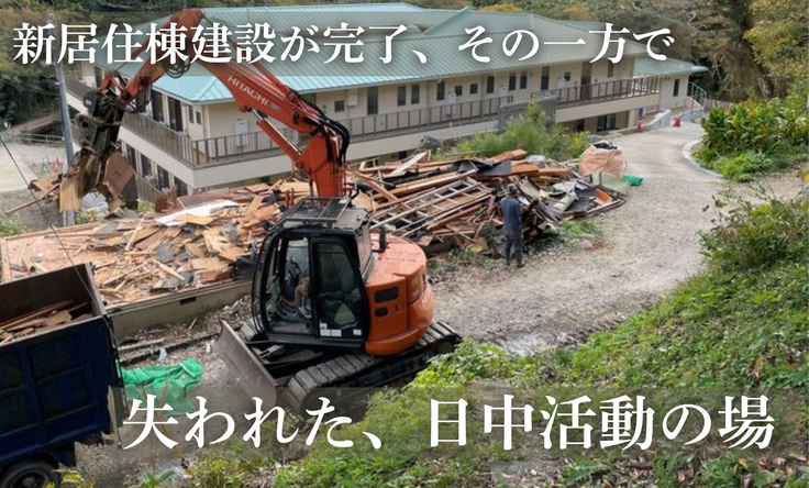 安心・安全な生活のベースは、今回の耐震改築整備工事で確保されました。しかし、耐震改築整備のための補助金の仕組み上、解体撤去工事を伴うため、私たちは、古くなった日中活動のための建物をいくつか失ってしまいました。