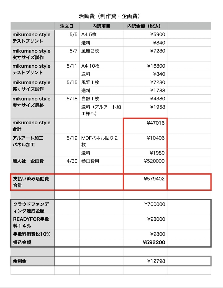 活動経費のご報告が遅れて申し訳ありませんでした。