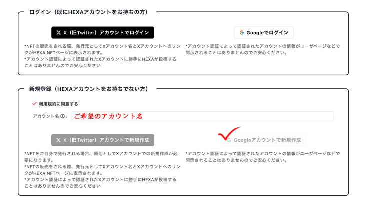 ③ X(旧Twitter) もしくは Google と連携してログインができますので、