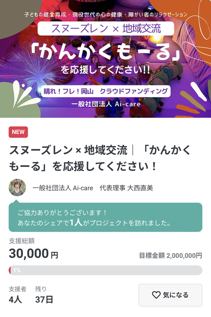 これまで、4名 の方から 合計 30,000円 のご支援をいただいております。
