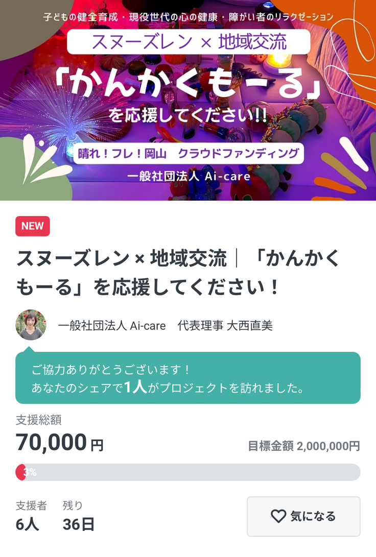 これまで、6名 の方から 合計 70,000円 のご支援をいただいております。
