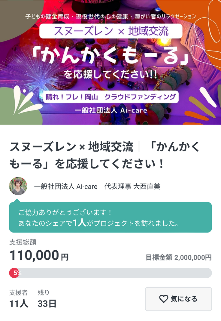 これまで11名 の方から 合計 110,000円 のご支援をいただいております。