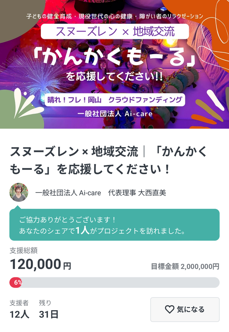 これまで12名 の方から 合計 120,000円 のご支援をいただいております。