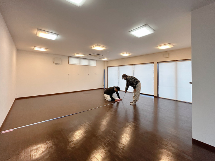 初日となる今日は、大工さんによる墨出しと養生、材料の搬入などが行われました。