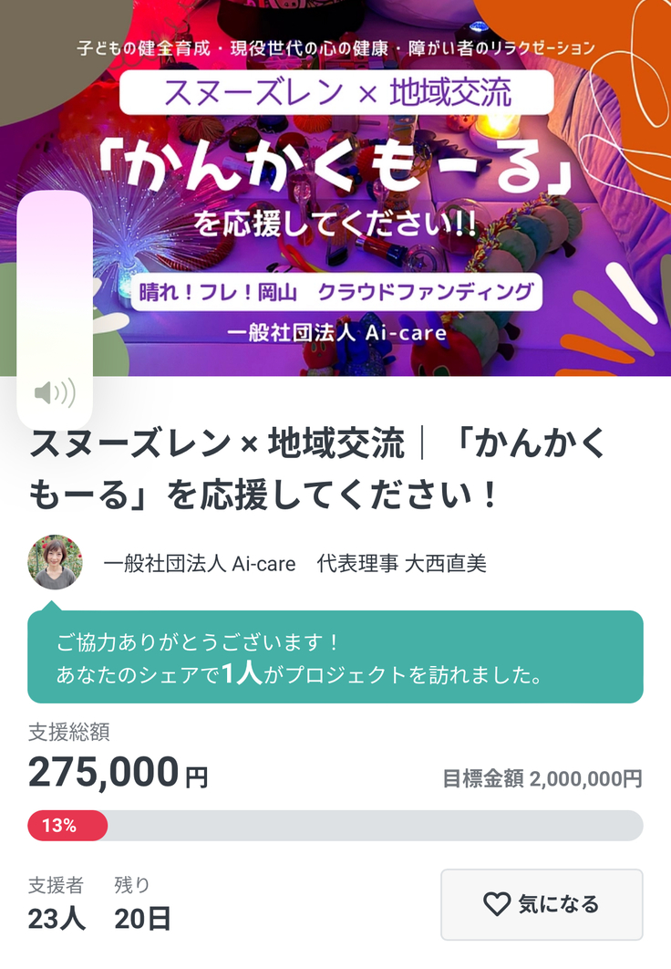 これまで 23名 の方から 合計 275,000円 のご支援をいただいております。