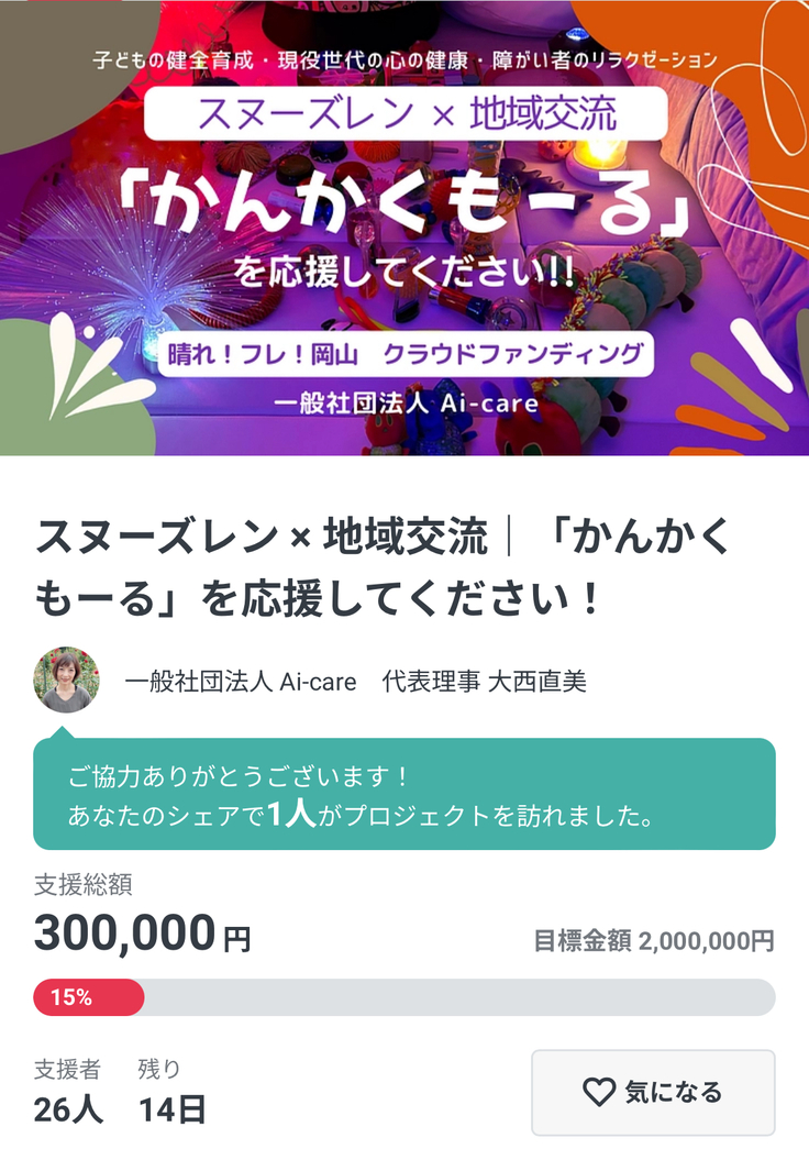 これまで 26名 の方から 合計 300,000円 のご支援をいただいております。