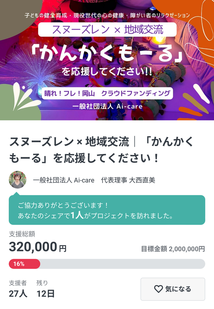 これまで 27名 の方から 合計 320,000円 のご支援をいただいております。