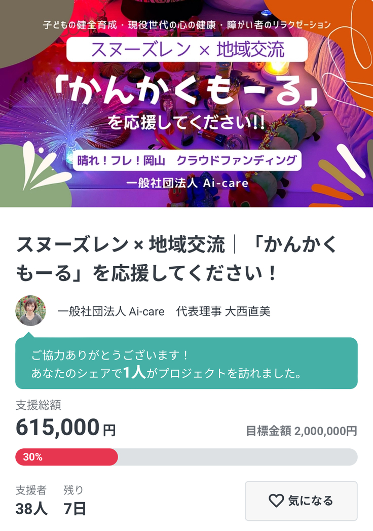 これまで 38名 の方から 合計 615,000円 のご支援をいただいております。