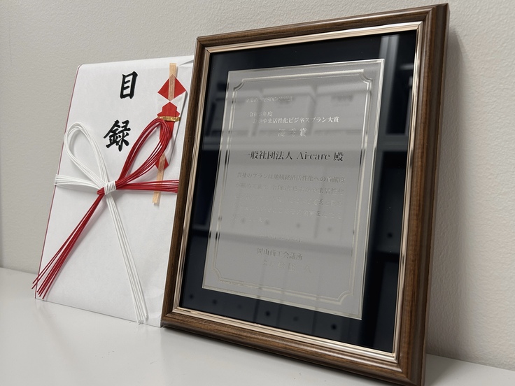 このたび「かんかくもーる」事業が、令和5年度「おかやま活性化ビジネスプラン大賞」の「優秀賞」に選ばれ、本日、岡山商工会議所にて行われました表彰式に、代表 大西が出席させていただきました。