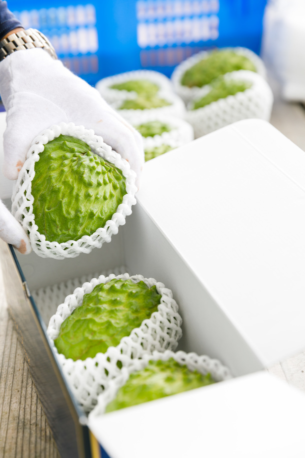 完成した化粧箱にお入れして来年の冬に収穫予定のアテモヤをお送りいたします!