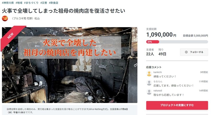 この度は、プルコギ苑 花野のクラウドファンディング挑戦にご支援・応援をいただき、心から感謝申し上げます!!