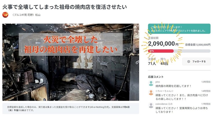 火災による多大な被害と絶望的な心境に置かれた中、皆様から寄せられた数々の温かい応援メッセージは私たちの心の支えとなっています。本当にありがとうございます!