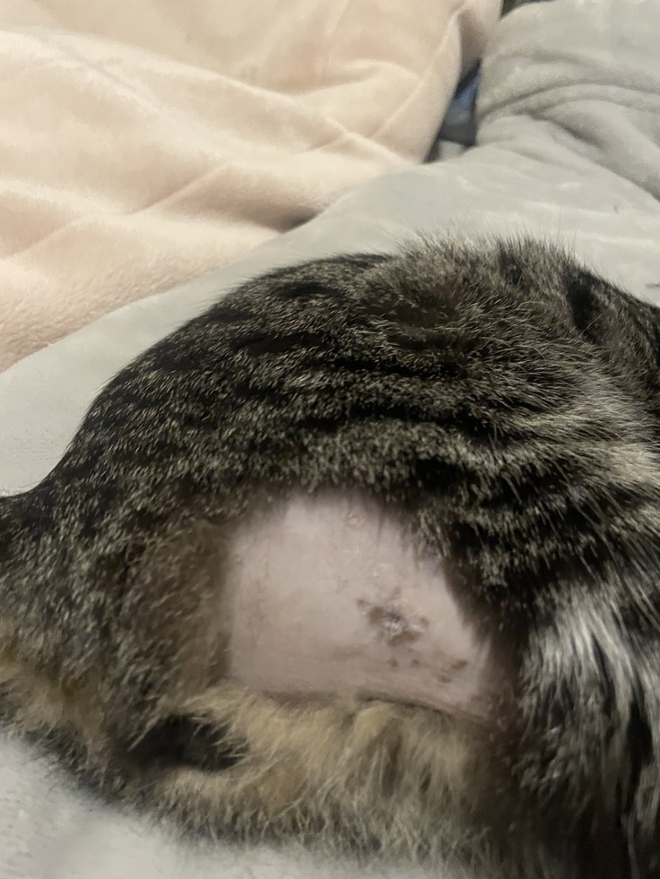 瘡蓋はまだ残っています。早く毛が生えますように。