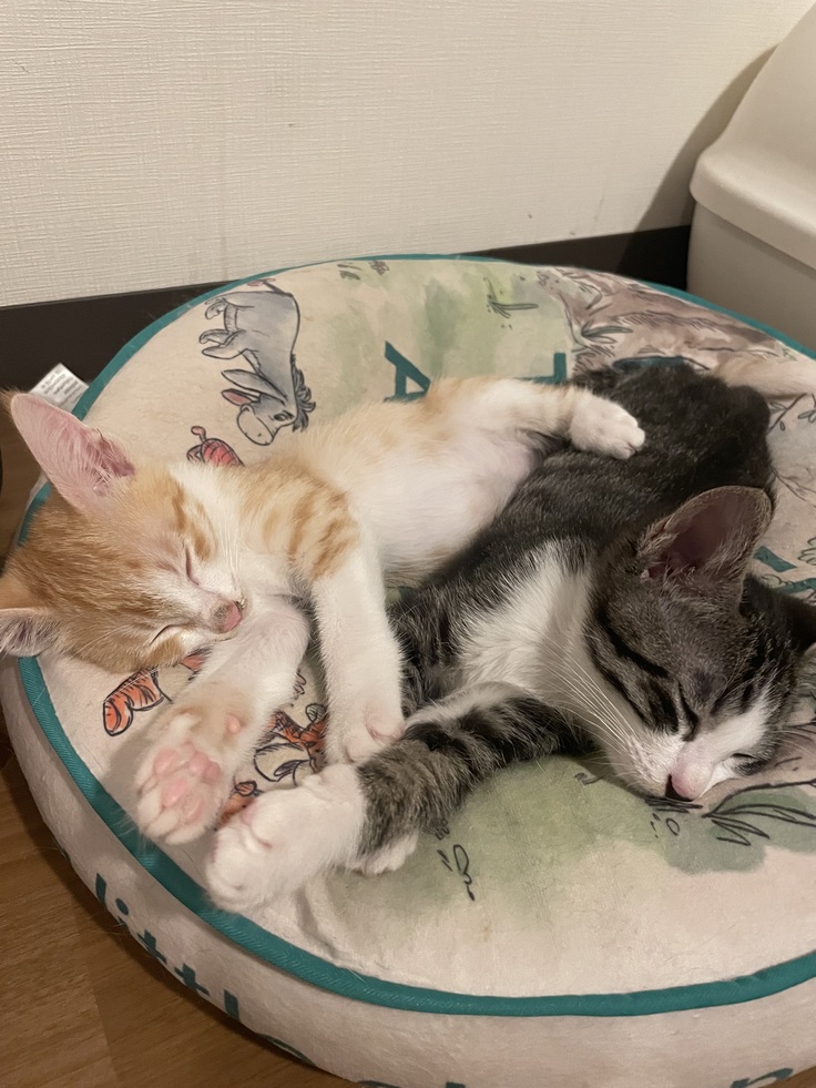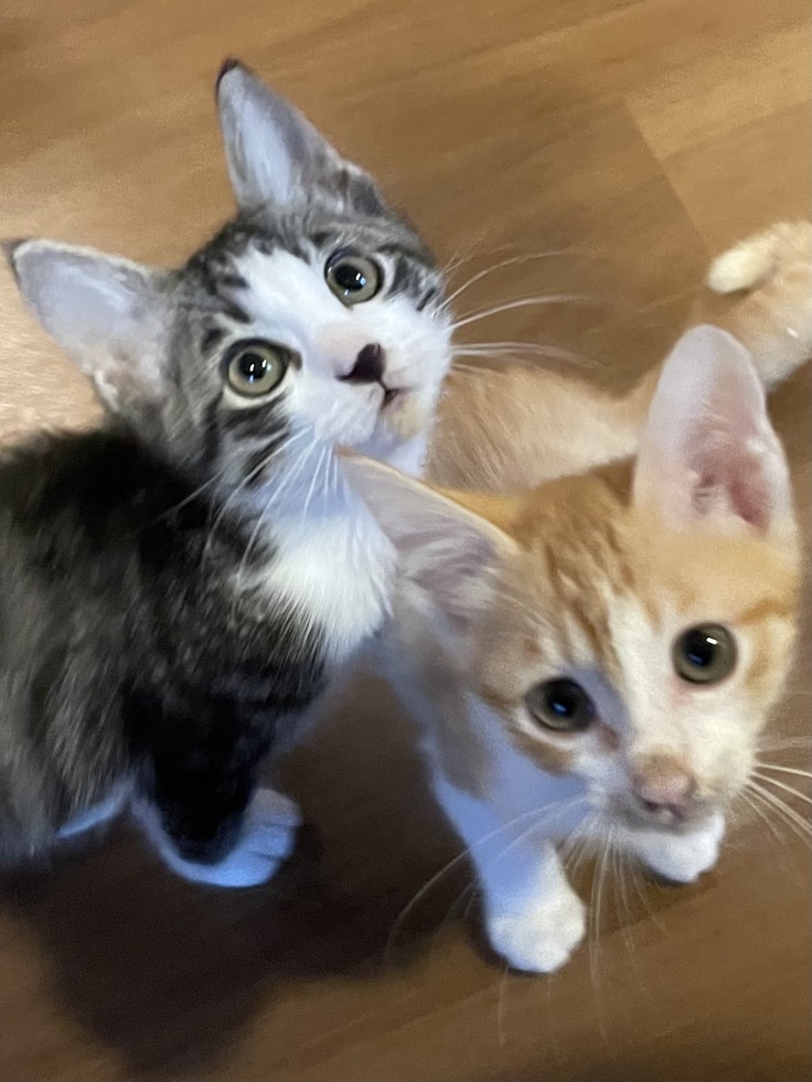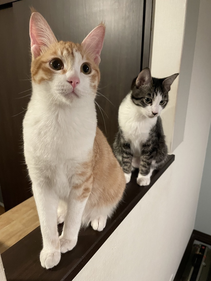 カノアは、いっしょに保護した茶白の兄弟カイともう1ヶ月以上別の部屋で暮らしてます。