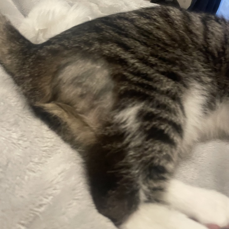 注射の跡が化膿して毛が抜けていた足ですが模様がわかるくらいに生えてきました