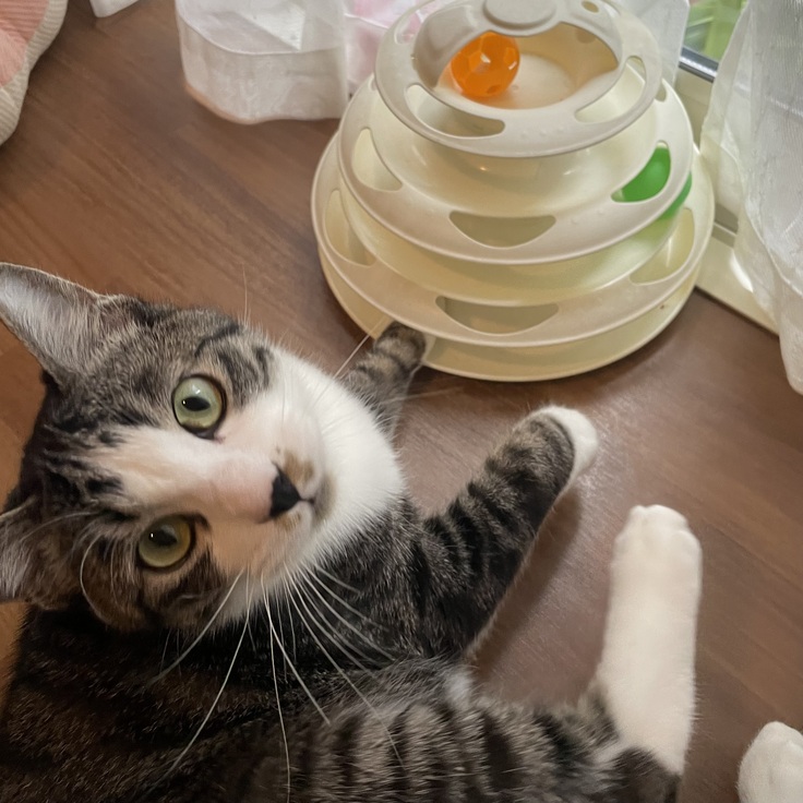 体重に合わせて投薬量を増やしましたがカノアの体調はとても良い状態で、おもちゃでもよく遊んでいます