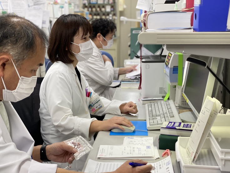 薬剤課では、医師、看護師をはじめとする医療スタッフと連携し、皆さまより信頼される薬剤師を心掛けています。