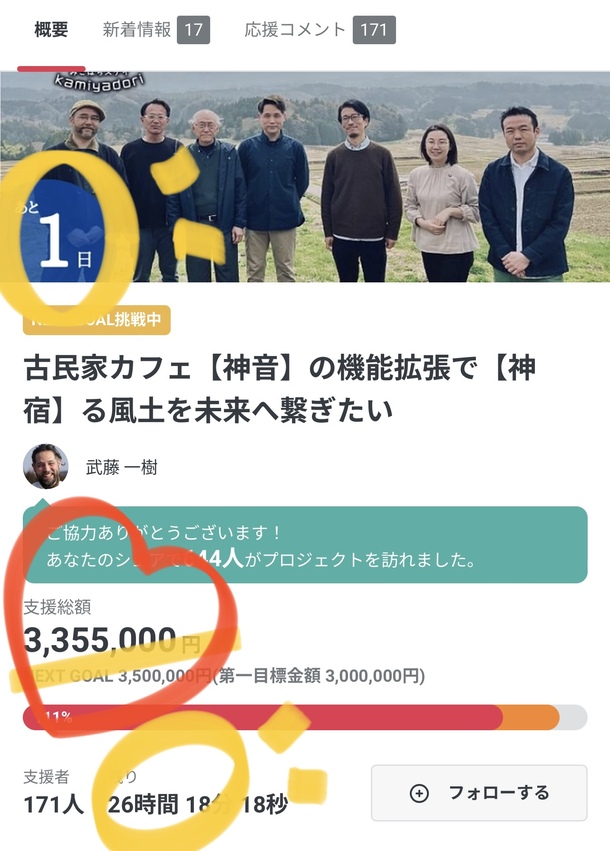 明日、このクラウドファンディングは終わりますが、【神宿 -kamiyadori- 】はスタート地点となります。