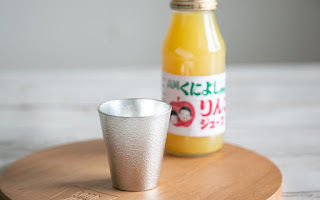 能作 製「オリジナル錫ミニタンブラー」と地元国吉産の「国吉りんごジュース」で