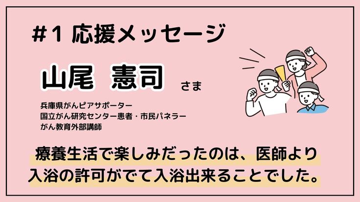本日は、兵庫県がんピアサポーターの山尾憲司様より応援メッセージをいただきましたので、ご紹介いたします。
