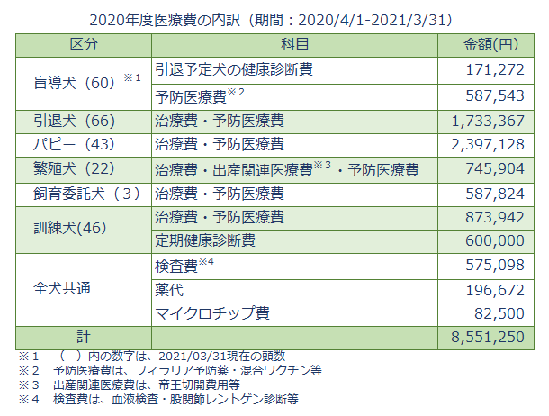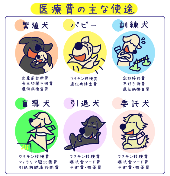 ※上記の他、マイクロチップ挿入費ならびに犬の健康維持に必要な試薬・医療機器購入費等も含めます。