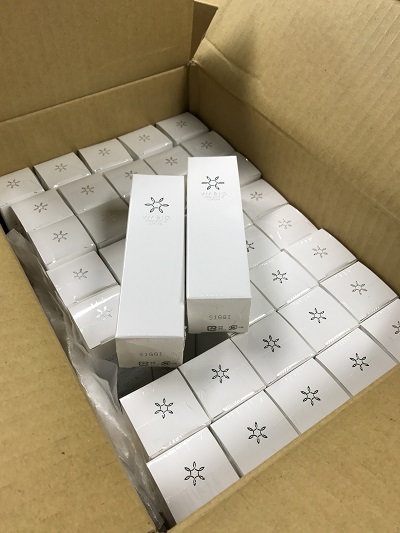 今回のクラウドファンディングでご支援いただいた化粧水が入庫し、検品に行ってきました。コンパクトで上品な仕上がりに思わず笑顔になってしまいます。