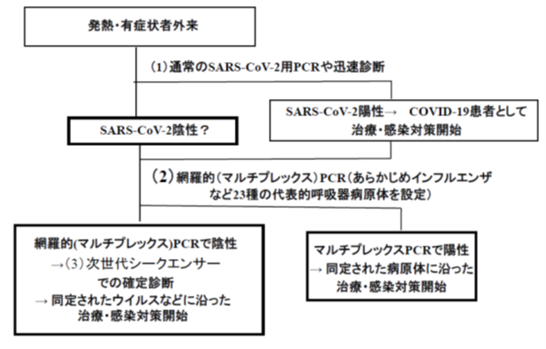 そこで、まずはCOVID-19流行下でSARS-CoV-2以外の感染による発熱者・有症状者に焦点を当て、これらの患者の原因ウイルス・病原体をしっかりと同定し、適切かつ迅速な治療・感染制御活動へつなげたいと考えています。