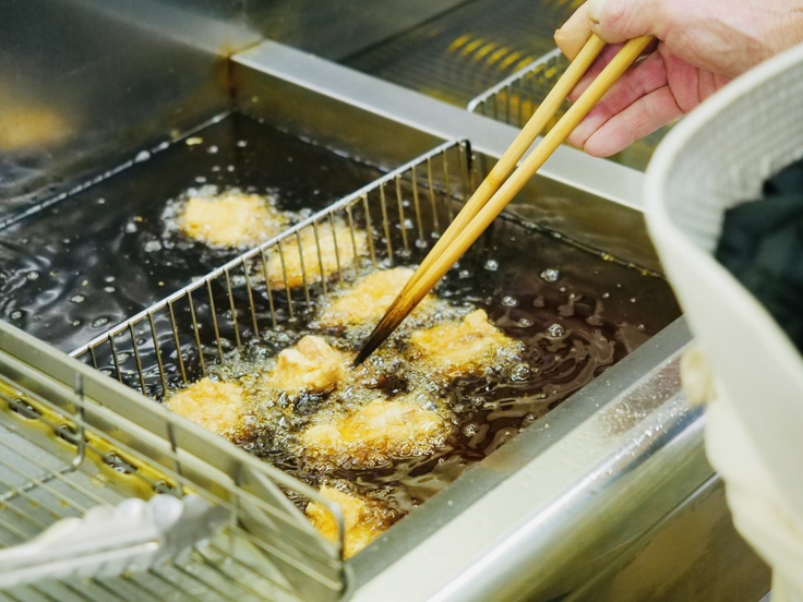 カリッとした食感は、おいしい唐揚げには欠かせないものそのためには新鮮な油で揚げる必要があります師匠の教えは、少しでも油が古くなったら交換すること。