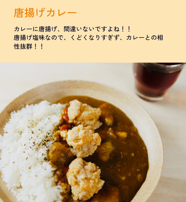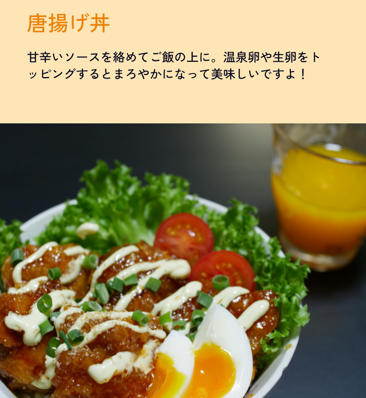私の唐揚げおすすめアレンジシンプルにそのまま食べるのももちろん美味しいですがちょっと一手間加えると、いつもとは違った味をお楽しみいただけます。