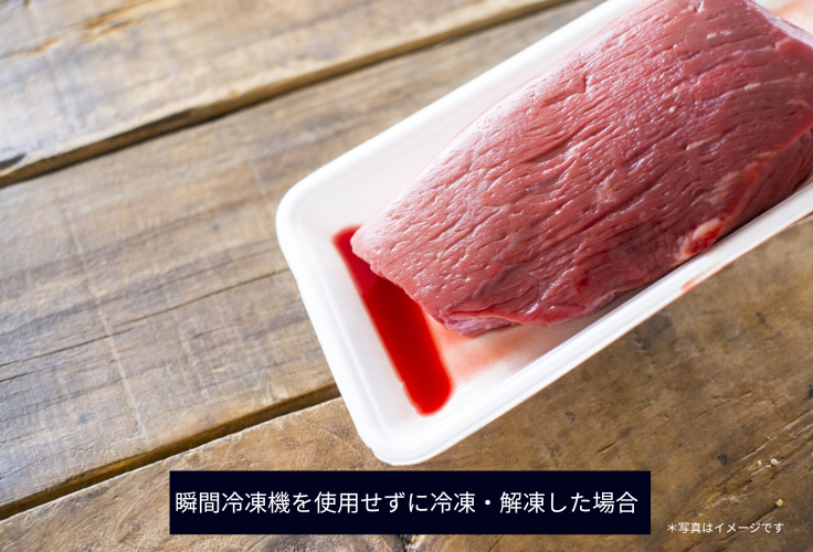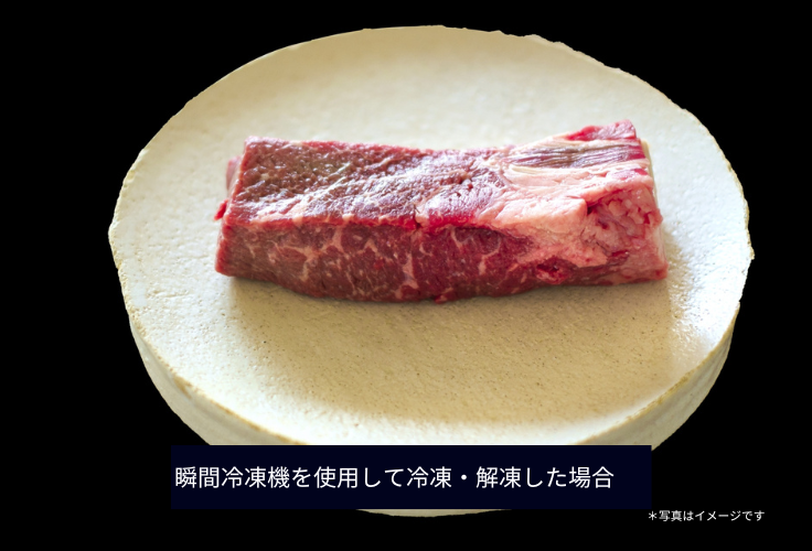 また、細胞が凍り始めるマイナス2度も一気に超えて冷凍します(この温度帯をゆっくり通過してしまうと、氷の結晶が大きくなり、お肉の細胞が傷つきドリップや旨味、水分が抜け出し味が劣化する)。