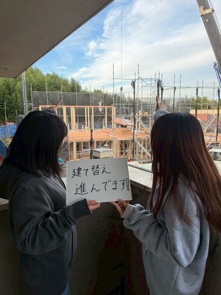 徐々に足場が出来上がり、部屋の形が見えてきました。子どもたちは、動くショベルカーを見て「ショベルカーだ!」と嬉しそうに眺めています。