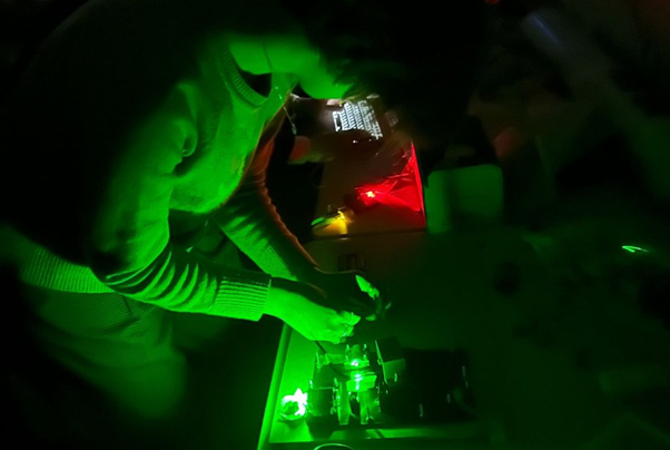 ラマン分光計という、レーザー光を物質に当てることでその物質が何か判断できる機器を作っています。これを用いて炭素でできた有機物を探します。