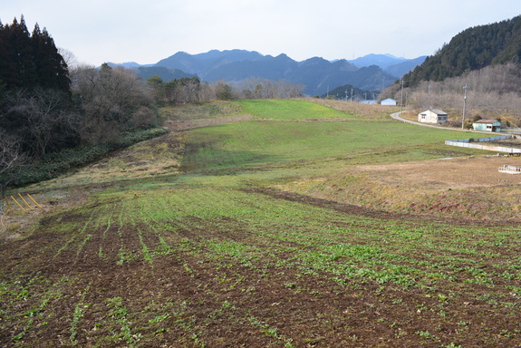 10月に種を蒔いて、徐々に大きくなってきています。うっすら筋になっているのがそうです。