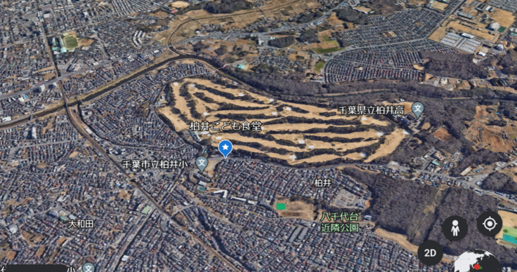 小学校区は鷹の台ゴルフ場を挟み東と西に分断されており、近くに花見川があり自然が豊かな状況であるにも関わらず柏井地域には公園がほとんどなく、数個ある公園も暗い印象で子どもたちが遊んでいない状況で、こどもたちの居場所と言えるものはありません。