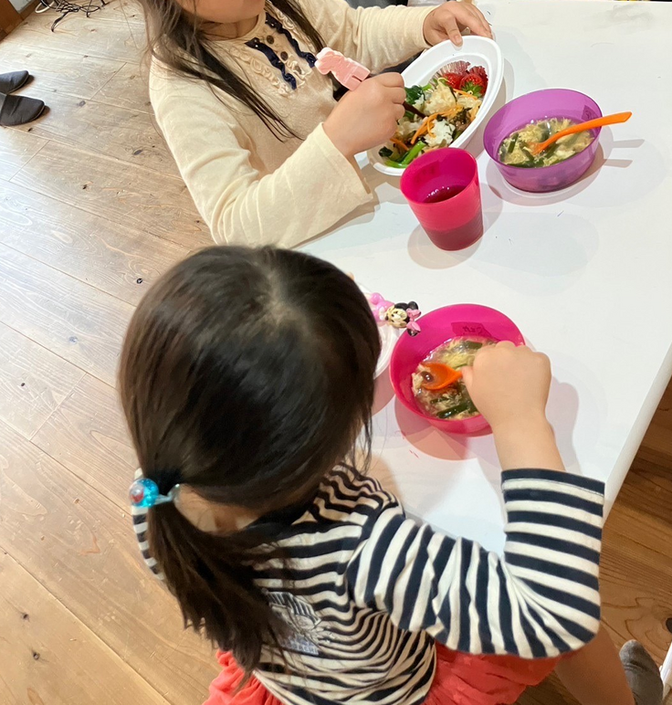 10年ほど前から小児科で勤めながら学研教室を行っていました。そのころから、給食のない時はお昼を一緒にたべて勉強をしたりしていました。それは働くママたちが食事を準備する苦労も、自分も鍵っ子だったので一人で食べる食事の寂しさも知っていたこともあります。