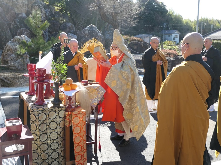 この度の落慶式では、工事完成に伴いまして、この場の今後の安全・無事に加えて