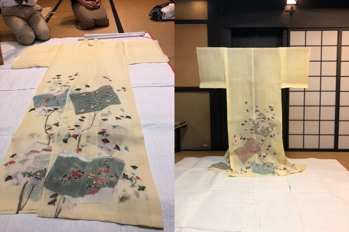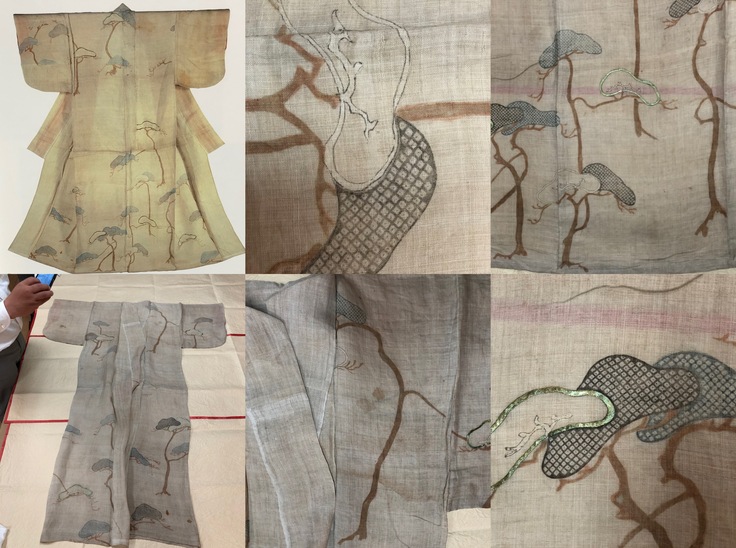 片身頃を大きく開ける寛文期特有のその意匠感覚からも、また、その気張らないデザインを際立たせる刺繍の技の秀逸さからも、今まで復刻してきた他の三領の「帷子」(後程詳しくお話し致します)とは趣をことにする、誠に一級資料たり得る現存品です。