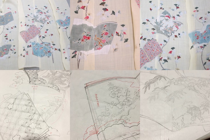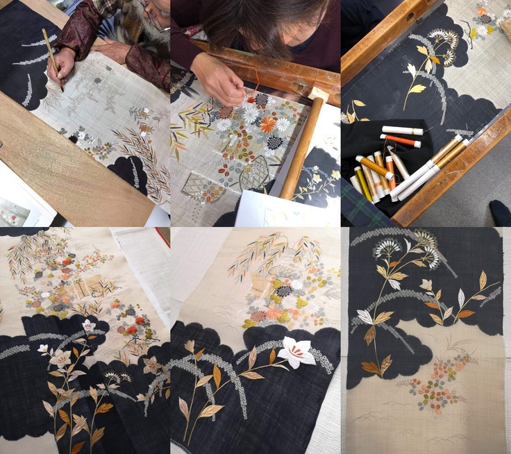 我が国が世界に誇る夏の衣裳『帷子』のその染め下生地である「重要無形文化財越後上布」の生産に携わる「技術保存協会」の方々と、その生地に古典に学んだ染色技法を活かしつつ加飾を施す京都の染繡家の方々と、その双方と連携して具体的に復刻プロジェクトを企画推進する私共の三者、設立発起人9名です。