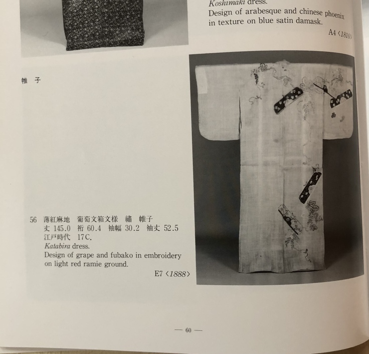 今回復刻を目指す『薄紅麻地葡萄文箱文様繍帷子』について