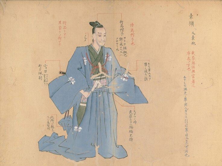 「左右のおとどたちをおきたてまつりては、おはせぬ上達部なし。二藍の直衣、指貫、あさぎの帷子をぞ透かしたまへる。すこし大人びたまへるは、青鈍の指貫、白き帷子も、涼しげなり」