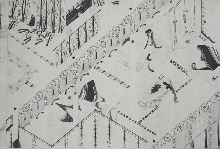 私達も、「薄紅色」と云う褪色し易い地色である故に、また、世にこの色系の遺品が誠に希少である事をも考慮して、この帷子を復刻の対象として選んで、元の華やいだ姿に戻してあげようと縷々心配りをしつつ、この作品から多くを学び、後の世に伝えるべく、復刻作業の細部を検討して来ました。