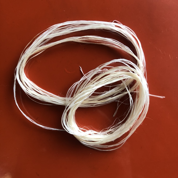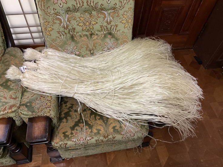 ※「青苧」について…ご協力下さった皆様全てに文化財越後上布の原料である「青苧(あおそ)を三筋お送りいたします。指先で髪の毛くらい細く裂いてみてください。文化財越後上布制作の気の遠くなる作業がきっと偲ばれることでしょう。