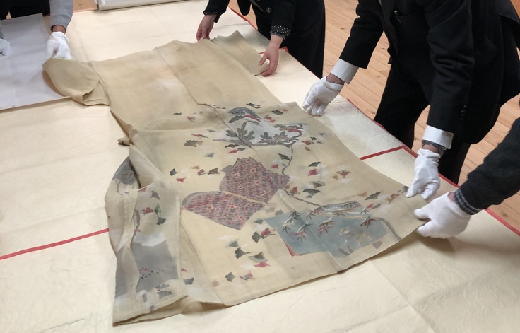今回のプロジェクトでは『帷子』を復元するところまでを目的としておりますが、皆様のご協力を頂いてこの『帷子』を美しく復刻できた暁には復刻過程で得た研究資料をも添えて、今までの活動と同じく奈良県立美術館への寄託申請手続きを行い、後世の研究に託したいと思います。