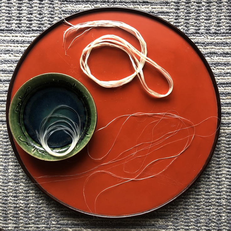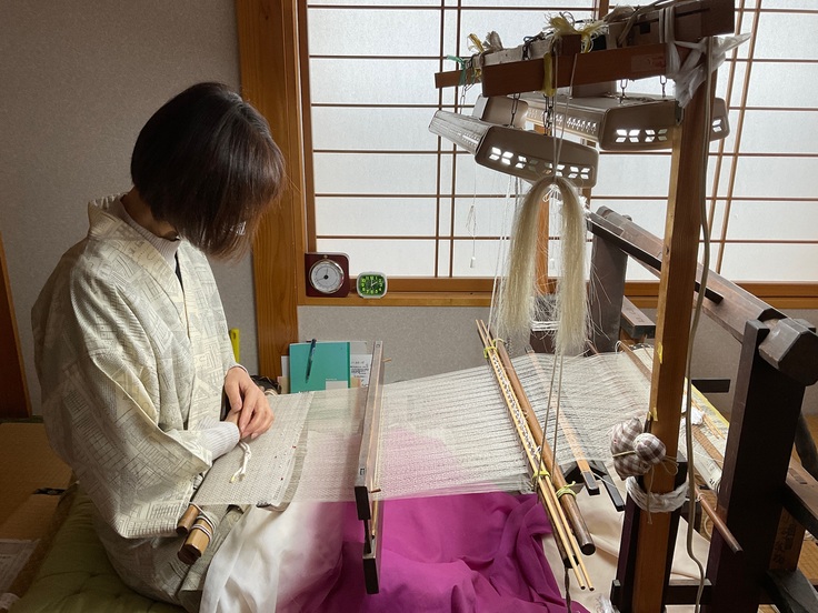 この青苧を指先で細く裂いて、繋いで、捻を掛けて糸に仕上げて、いざり機に掛けて布に織る......といった悠久の営みの一端を皆様も心ひたす「糸繰り」で親しんでみてください。