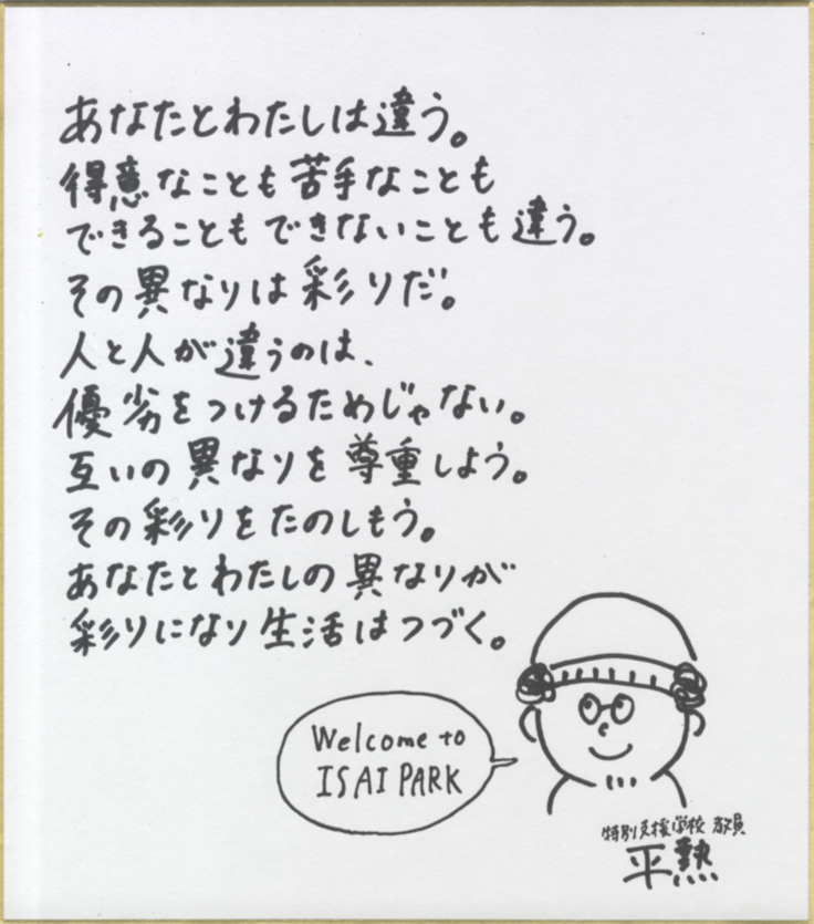 あなたとわたしは違う。得意なことも苦手なこともできることもできないことも違う。その異なりは彩りだ。人と人が違うのは、優劣をつけるためじゃない。互いの異なりを尊重しよう。その彩りをたのしもう。あなたとわたしの異なりが彩りになり生活はつづく。