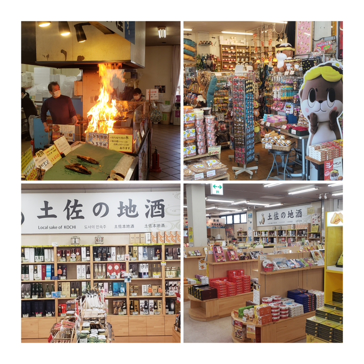 地場産品を中心に県下のお土産物、ご当地キャラクター「しんじょう君」グッズを販売しています。また、2階にはレストランがあり、須崎名物「鍋焼きラーメン」や新鮮な魚介料理など地元の食材を使ったメニューを豊富に取り揃えております。