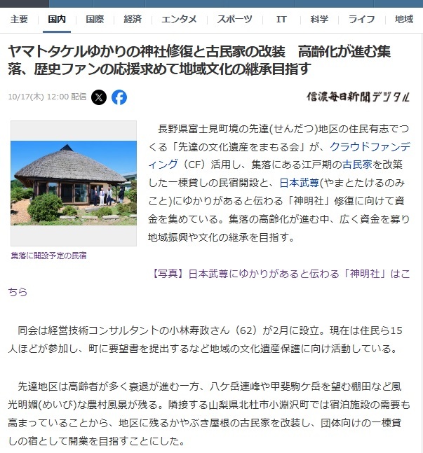 信濃毎日新聞デジタルニュースに掲載 (10月17日)