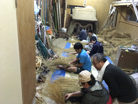 毎年、祭りの前に藁を準備し、町内の男衆が総出でしめ縄を作り、新しく取り替えていました。