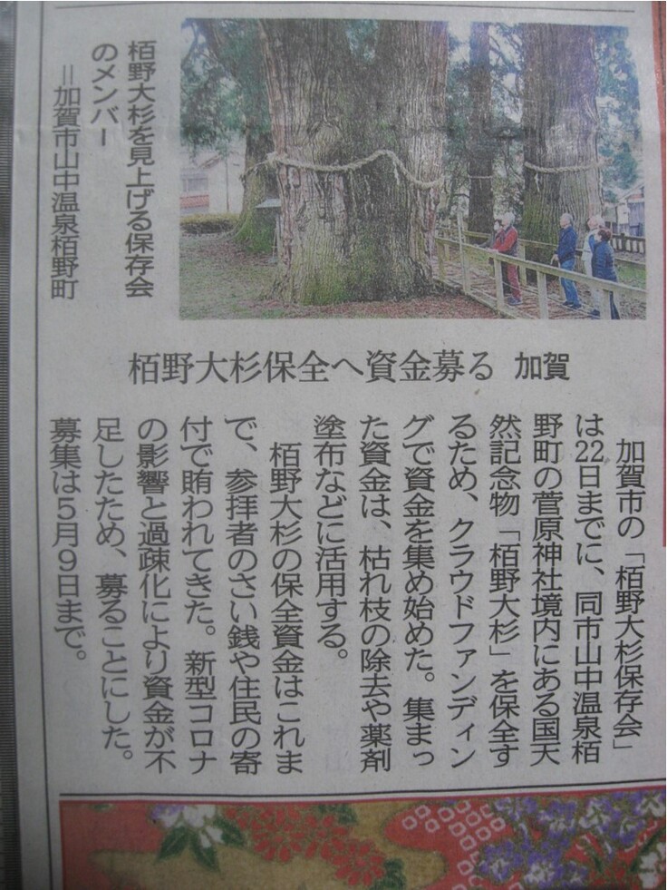 昨日、北國新聞の方が取材に来てくださり、今日の朝刊(石川南紙面の一画)に今回のクラウドファンディングの記事が掲載されました。(3/23)