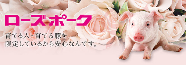 ローズポークは、茨城が生んだ安全でおいしい銘柄豚肉です。茨城県が長年かけて造成した系統豚を利用した銘柄豚肉で、茨城県の県花「バラ」にちなんで名付けられたものです。厳しく選別・指定された生産農家が、やわらかく風味がある肉にするため、ローズポーク専用飼料で育てています。生産者も、飼養管理の内容もはっきりしていますから、美味しいうえにきわめて安全・安心な豚肉なのです。